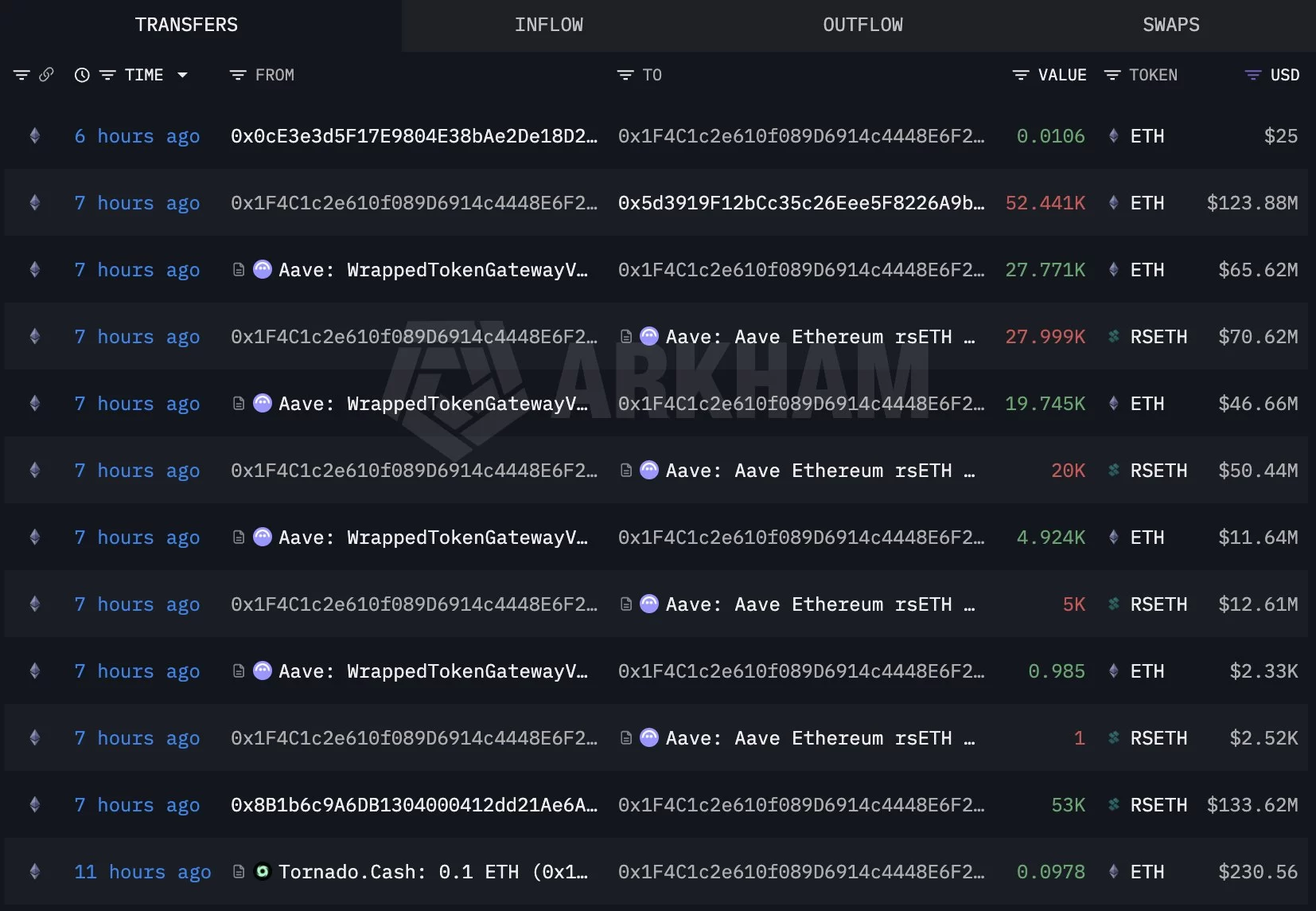 Aave The Kelp DAO attack, which caused the rsETH markets on V3 and Aave V4 to be frozen, led to the exploitation of rsETH. The attacker mined rsETH, borrowed ETH against it, and concealed the funds using Tornado Cash. While AAVE dropped 10% after the attack, ETH price continues the day with a 3% loss.