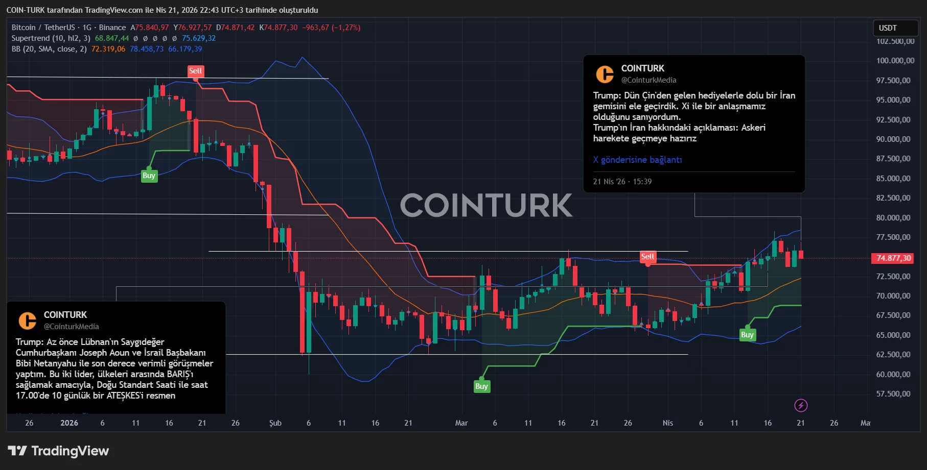 Despite the efforts of Pakistan and regional countries, the talks did not take place. The AP just announced that Vance’s trip to Pakistan has been cancelled. BTC At the time the article was being prepared, it fell below 75 thousand dollars and started searching for its daily bottom.