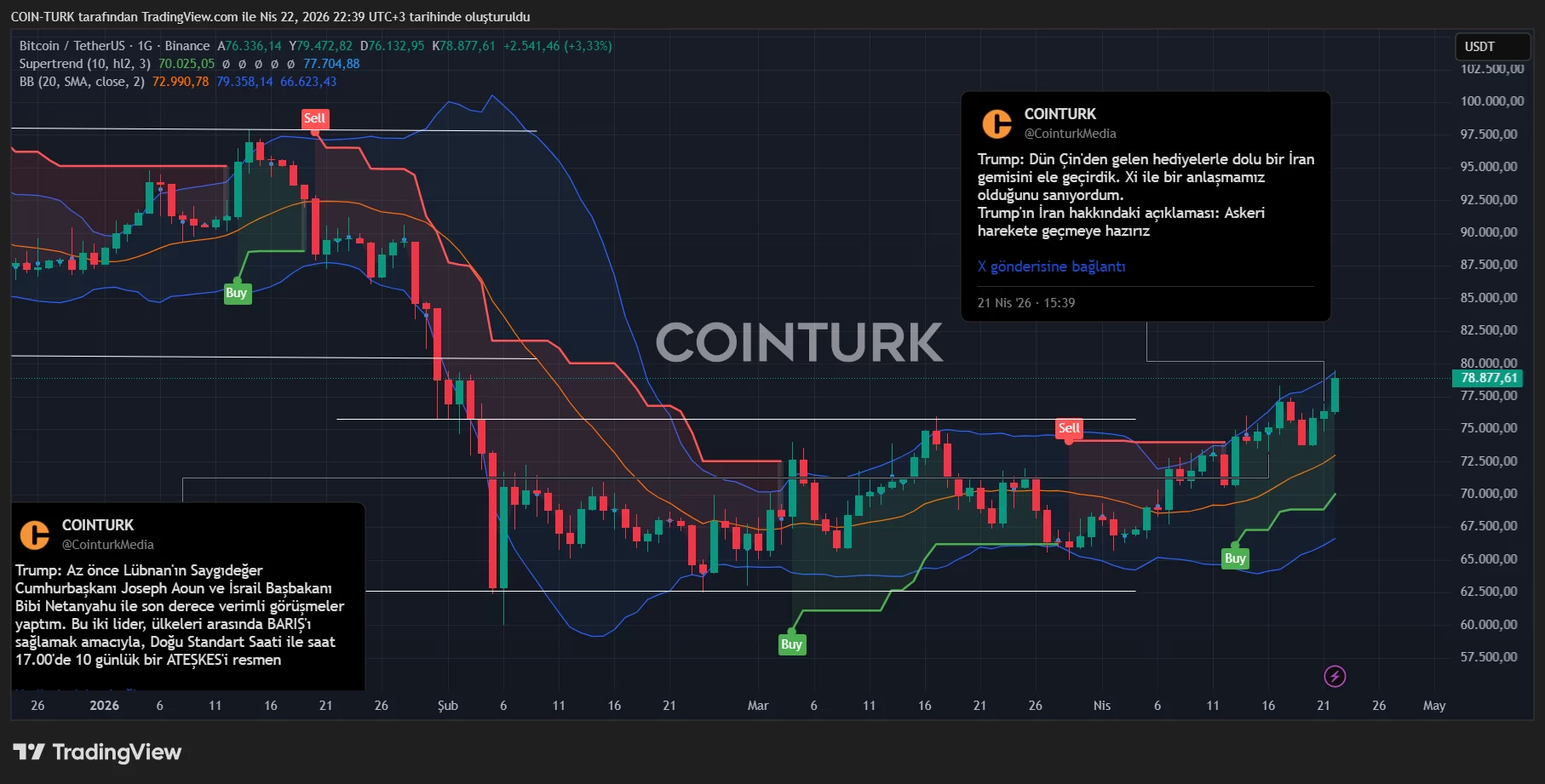 Bitcoin It is above 79 thousand dollars, but there is activity in the news flow. Trump may have postponed the deadline by a few days. But if there is no agreement at some point, the war must start again. Lebanon is a good excuse for Iran here and a warning has now been issued for US citizens. The White House statement has ended at the time of writing.