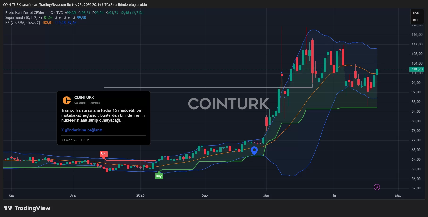 Bitcoin (BTC) Even though it is accelerating its rise today, it does not seem convincing at all. The Strait of Hormuz has not been opened and officials say it will not be cleared of mines for 6 months. Moreover, Iran has not even come to the table for a permanent agreement yet. While Trump is unilaterally extending the ceasefire, he is talking about 8 female prisoners to be executed in Iran.